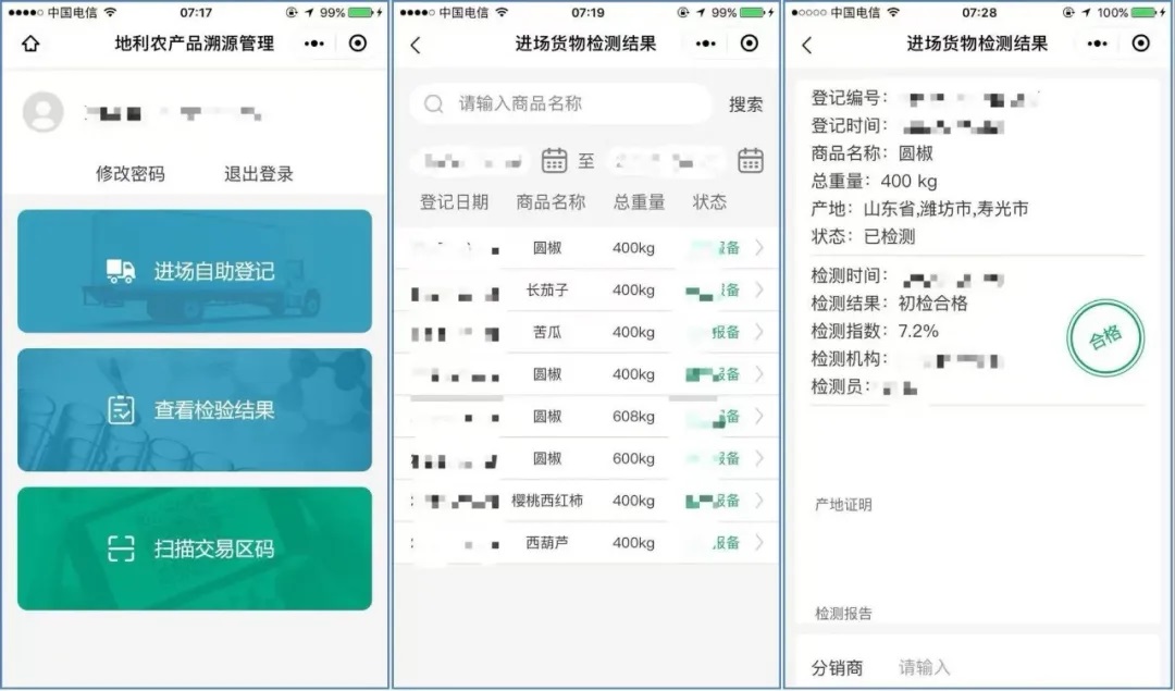 在园区内,寿光地利把农产品来源作为起点,通过产地数据与市场快速检测设备的联通,实现农产品检测信息数据共享,并基于园区车辆、商品、交易、出场业务为一体的闭环式交易流程,推进由进到出全周期追溯管理的提档升级。同时,依托电子交易结算信息,使交易双方在业务中自然进行农产品追溯信息的采集与传递。在市场外,寿光地利将货物离场登记纳入园区管理,确保进场和离场的农产品全面纳入追溯管理范围,推动农产品流通数据与地方监管平台有效对接,实现互联互通,为政府监管、民生保障提供真实有效的数据依据。