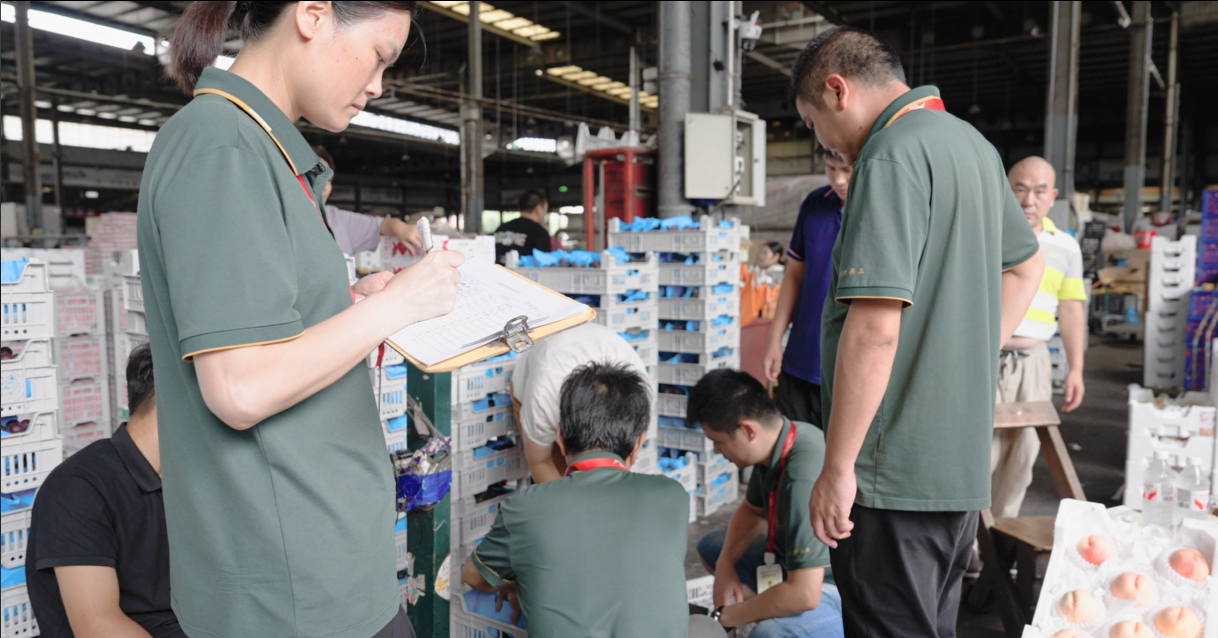 第二关是“检查”关。杭州地利果品市场在货物入场环节加强了抽检力度,重点核查包装材质、重量是否符合《管理办法》,对疑似违规包装开箱查验,坚决将不符合标准的果品挡在市场之外。同时提高了场内抽检的频次,对在售果品包装进行复核,确保入场后无“变通”增重行为。