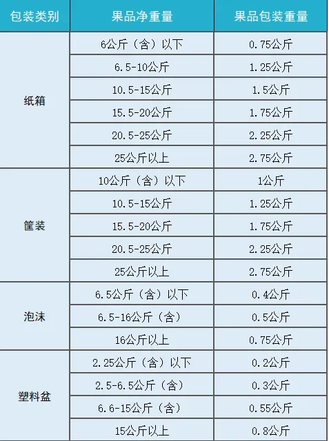 《办法》中对不同类别包装重量的规定