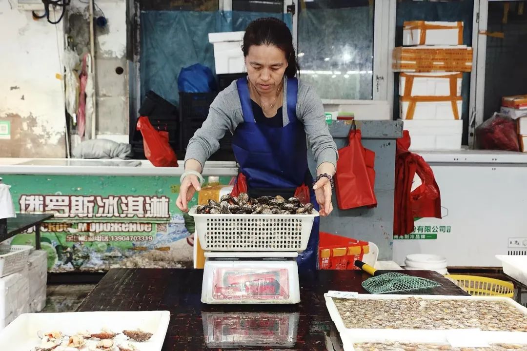 图:哈尔滨地利哈达市场水产业户去皮称重