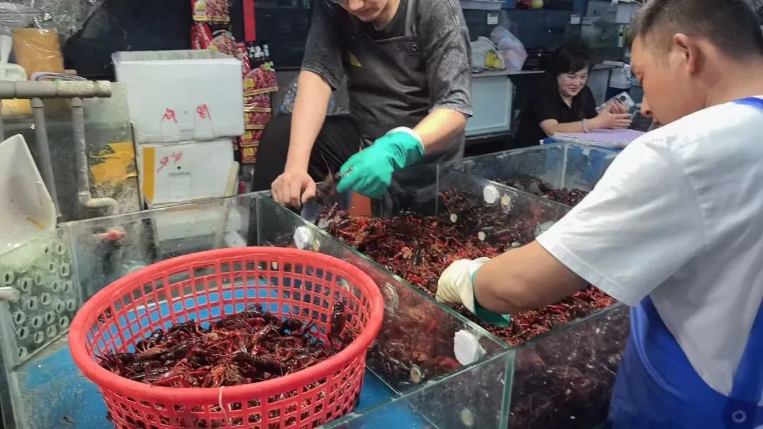 正值水产品销售旺季,在以水产品为主的哈尔滨地利友谊市场内,小龙虾当仁不让地占据着每家摊位的“C位”。作为夏日夜宵“顶流”,其上市量激增,价格应声回落,市民采购热情持续升温。“目前市场小龙虾主要来自湖北、江苏,中等大小的零售价约20元一斤,比上个星期每斤要便宜5元!”一位水产业户介绍。尽管交易繁忙、客流如潮,但去皮、沥水、称重的标准操作丝毫不马虎,确保顾客买得放心,吃得安心。