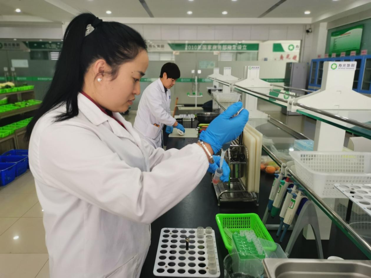 凌晨,丰收季的忙碌早早启幕,一辆来自内蒙古产区的货车载满了南瓜,停靠在寿光地利大门口等候入场。市场食安检测人员随机取样送入食品安全检测中心,经信息备案和检测合格后,这车南瓜即完成“身份认证”并进入园区。