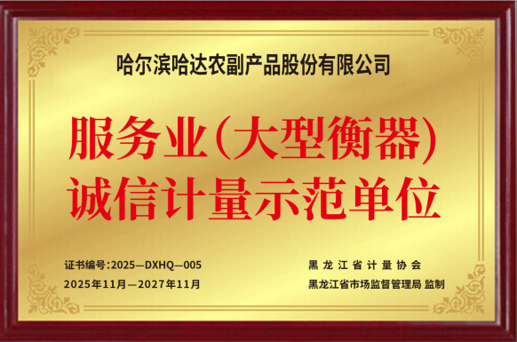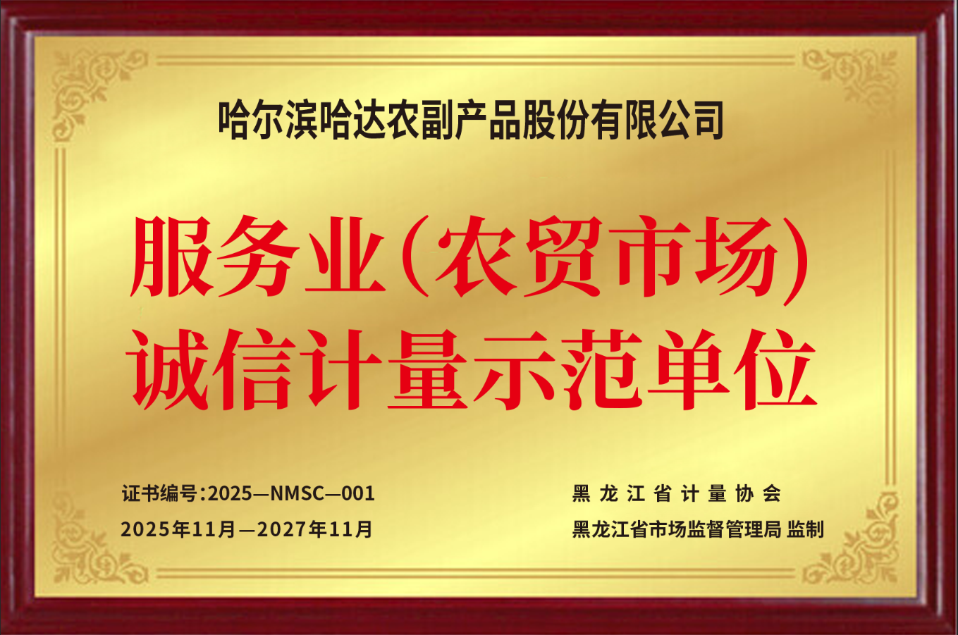 近日,地利集团旗下哈尔滨地利哈达市场(以下简称“哈达市场”)在黑龙江省省级服务业诚信计量体系建设中荣获嘉奖。哈达市场凭借规范、精准的计量管理,获评“服务业(农贸市场)诚信计量示范单位”称号,并顺利通过“服务业(大型衡器)诚信计量示范单位”复审。一次收获两项荣誉,标志着哈达市场在计量管理的精准化、规范化和诚信化方面获得了权威认可,也彰显了市场以诚为本的经营信念。